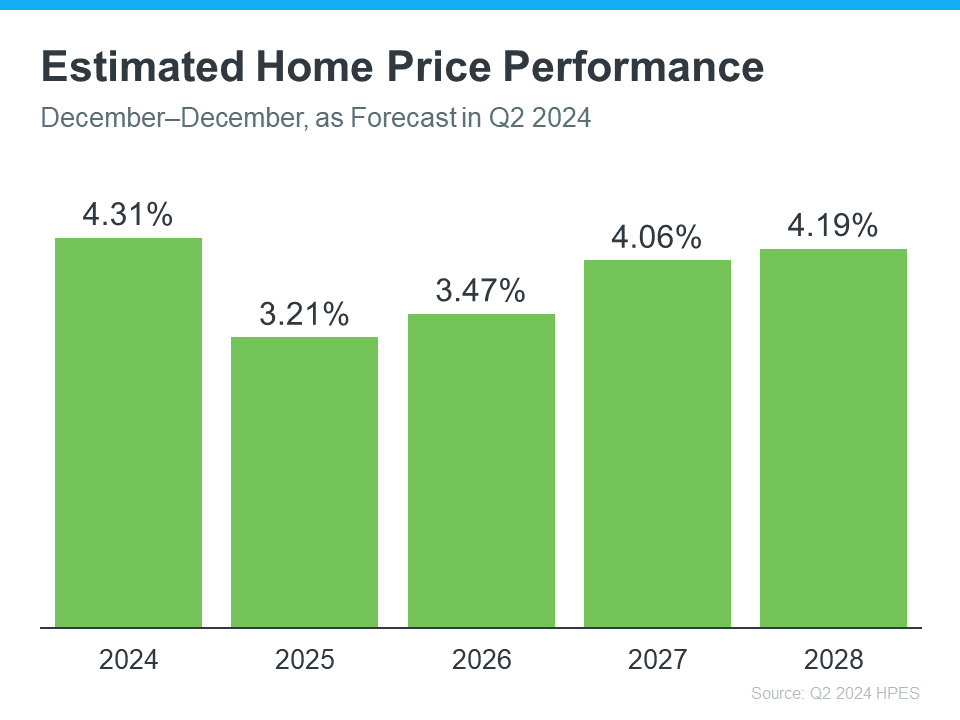Each quarter, Fannie Mae releases the Home Price Expectations Survey (HPES). It asks over one hundred economists, real estate experts, and market strategists what they forecast for home prices over the next five years. In the latest release, experts are projecting home prices will continue to rise through at least 2028 (see the graph below):