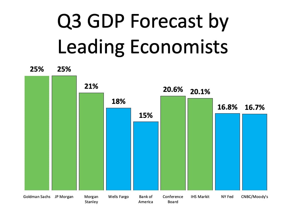 Overwhelmingly, economists are projecting GDP growth in the third quarter of 2020, with 5 of the 9 experts indicating over 20% growth. Lisa Shalett, Chief Investment Officer for Morgan Stanley puts it this way: