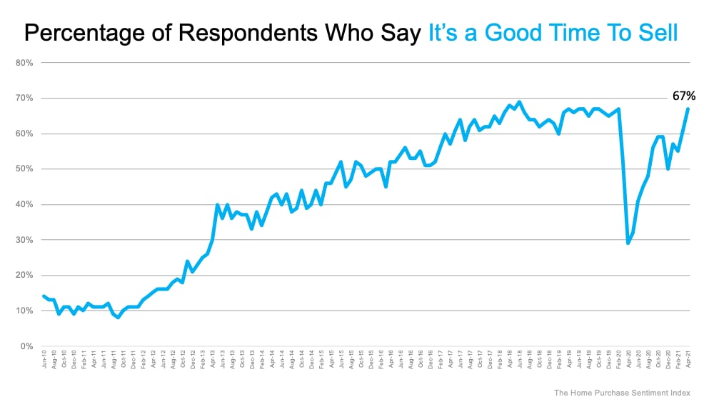The Home Purchase Sentiment Index (HPSI) by Fannie Mae recently noted the percentage of consumer respondents who say it’s a good time to sell a home increased from 61% to 67%. Doug Duncan, Senior Vice President and Chief Economist at Fannie Mae, indicates:
