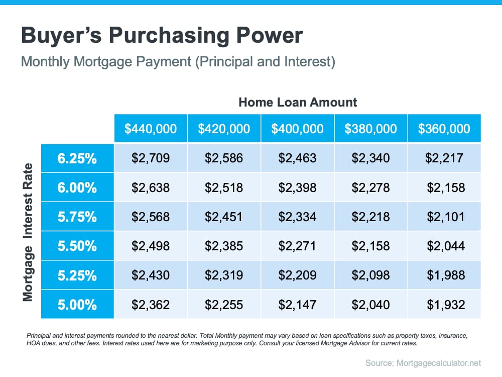 That’s because when rates go up (as they have for the majority of this year), they impact how much you’ll pay in your monthly mortgage payment, which directly affects how much you can comfortably afford. The inverse is also true. **A decrease in mortgage rates means an increase in your purchasing power.**