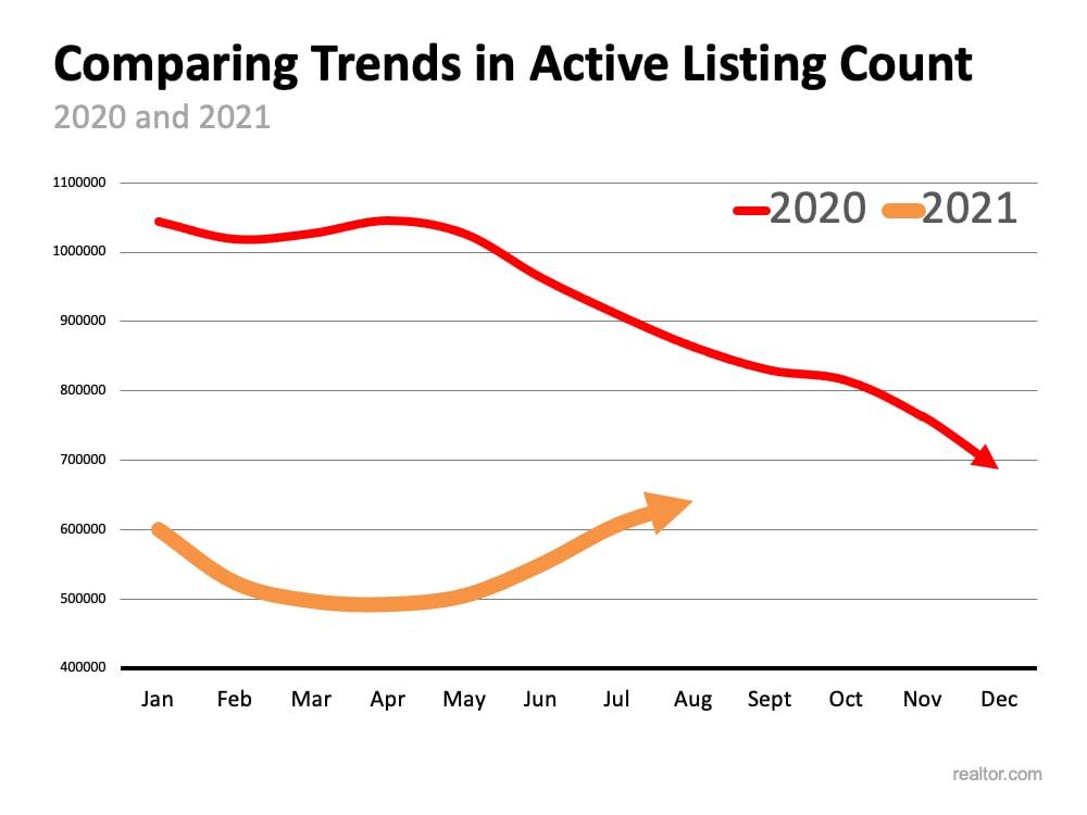 Due to the decline of active listings in 2020, 2021 began with record-low housing inventory counts. However, we’ve been building inventory over the last several months as more listings come to the market (see graph below):