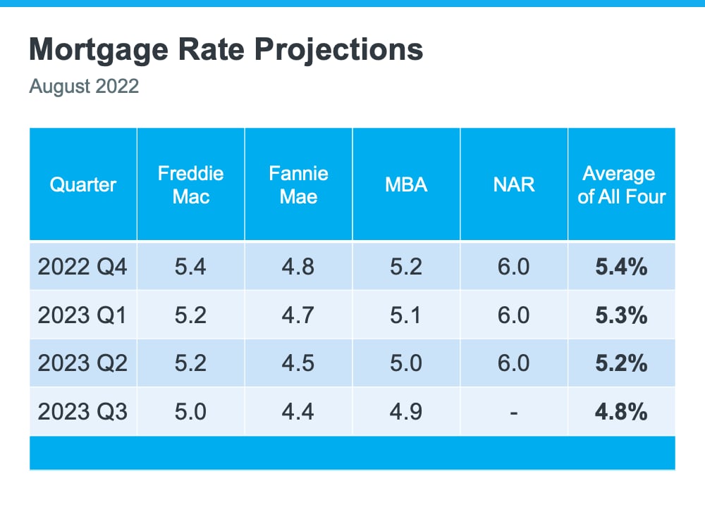 If you’ve been thinking of buying a home, you may have been watching what’s happened with mortgage rates over the past year. It’s true they’ve risen dramatically, but where will they go from here, especially as the market continues to slow? As you think about your homeownership goals and decide if now’s the time to make your move, the best place to turn to for that information is the professionals. Here’s a summary of the latest mortgage rate forecasts from housing market experts.