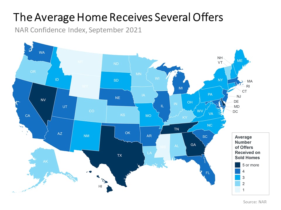 According to the latest data from the National Association of Realtors (NAR), the average seller received 3.7 offers on their house in September. For a view into what’s happening at the state level, take a look at the map below: