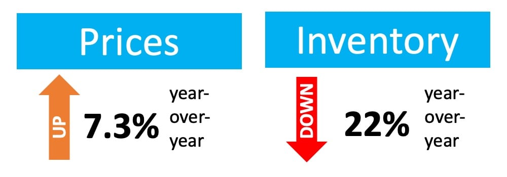 According to the latest Home Price Insights from CoreLogic, prices have appreciated 7.3% year-over-year. At the same time, the National Association of Realtors (NAR) reports that inventory has dropped 22% from one year ago.