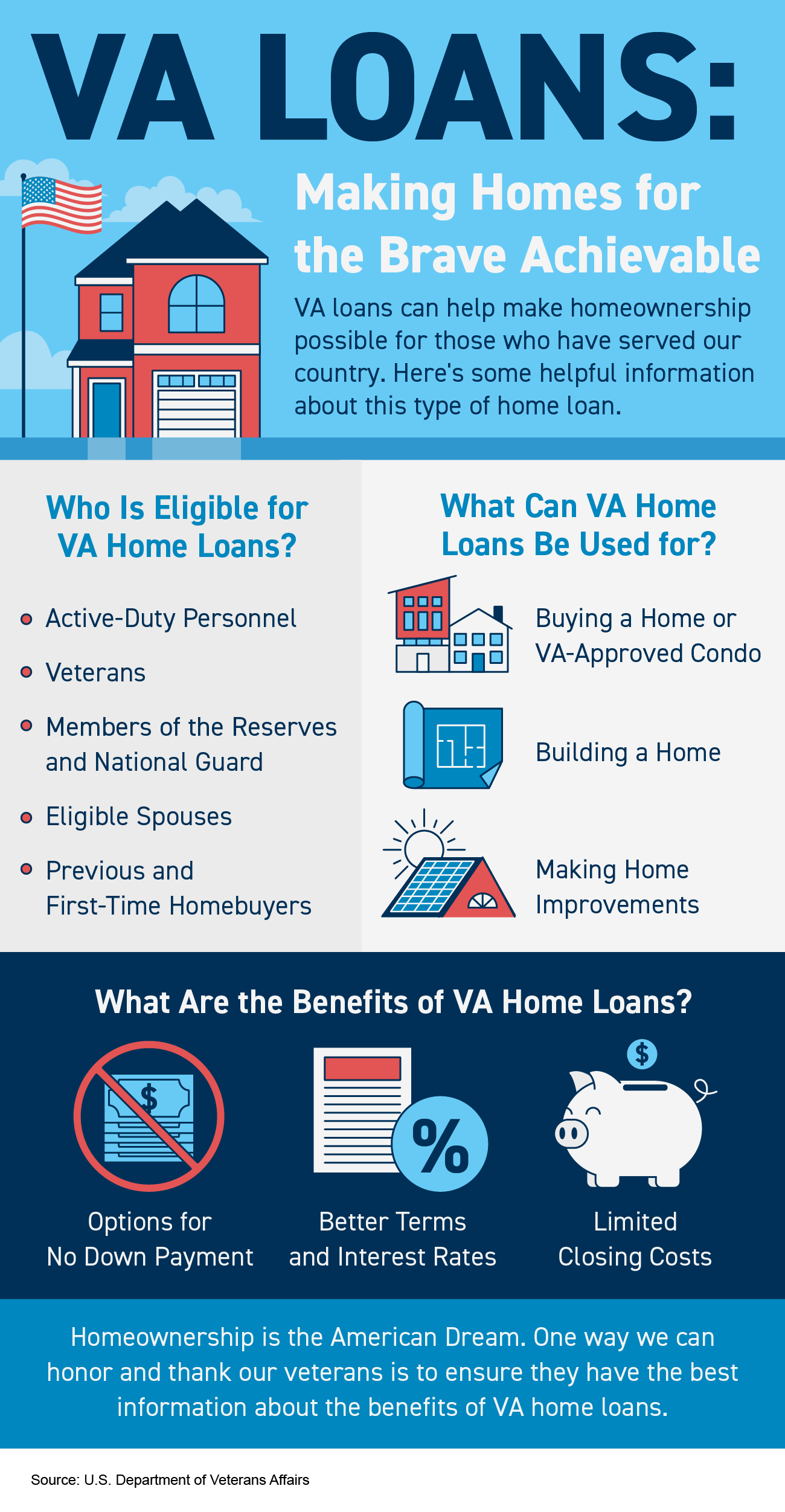 - Homeownership is the American Dream. One way we can honor and thank our veterans is to ensure they have the best information about the benefits of VA home loans.
