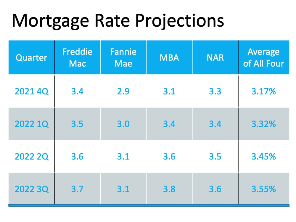 In late September, mortgage rates ticked above 3% for the first time in months. And according to experts throughout the industry, mortgage rates are projected to continue rising in the months ahead. Here’s where experts say rates are headed: